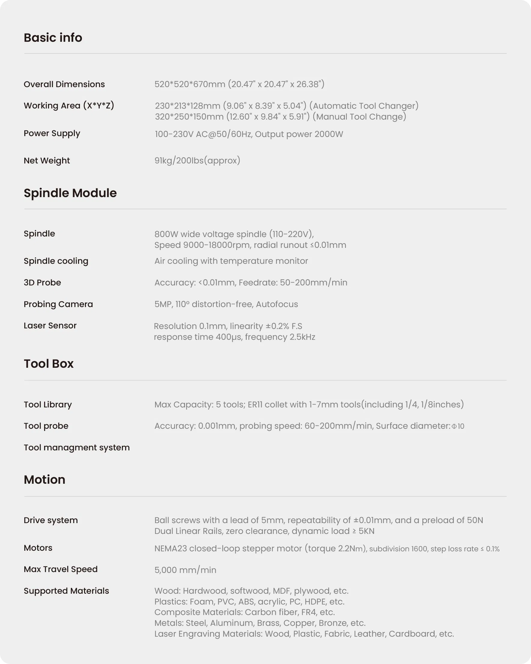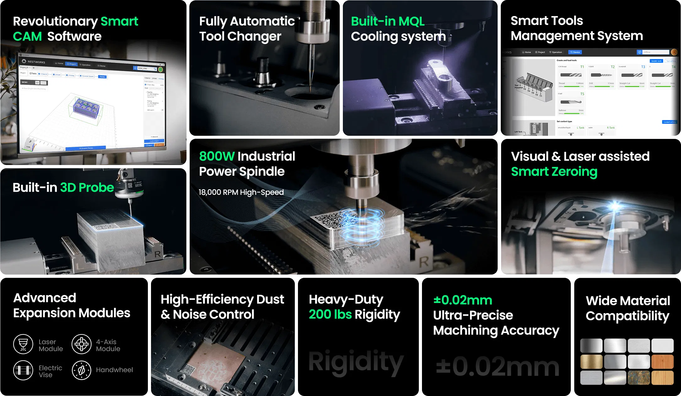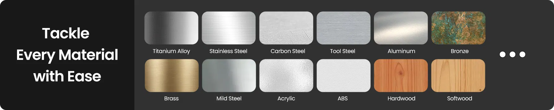 Powered by an 800W spindle reaching 18,000 RPM, this machine offers the torque and stability for heavy-duty tasks. It effortlessly cuts through hardened steel, titanium alloys, and other tough materials, delivering efficient roughing and precise finishing with professional surface quality.